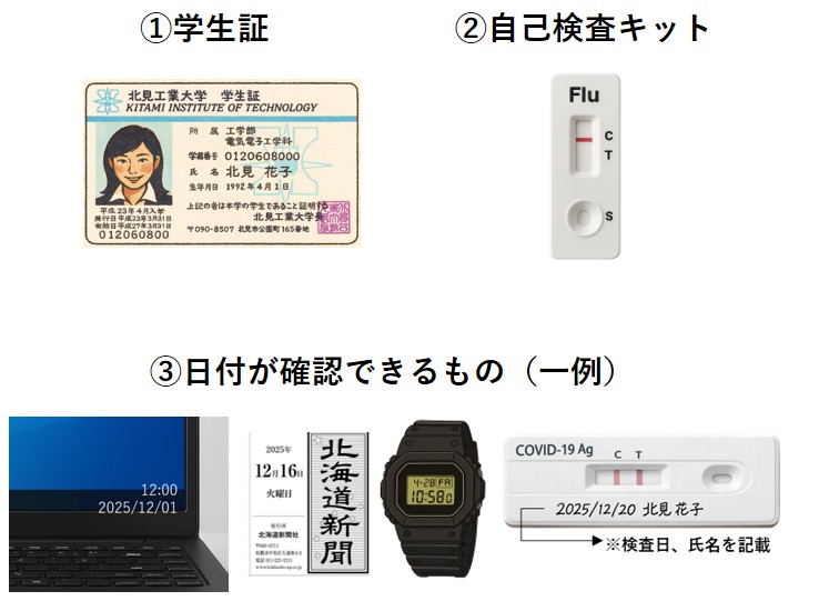 医療機関の領収書、診療費明細書、処方箋、おくすりの説明書に加えて、 自己検査キット(インフルエンザ、新型コロナウイルスの場合)の いずれかを写真に撮影したファイルを、上記システムに登録して下さい。 医療機関の診断書は不要です。なお、自己検査キットの場合は、「学生証」、「自己検査キット」、「日付が確認できるもの」3点を、1枚の写真に収めて下さい。